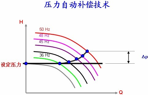 根據(jù)系統(tǒng)阻力特性,當流量越大時,系統(tǒng)的阻力越大。為了滿足系統(tǒng)在最大用水量時有足夠的揚程來克服系統(tǒng)阻力。一般廠家在設定系統(tǒng)壓力時只能按最大流量所需的壓力來設置,當小流量用水時壓力過剩造成能量浪費。長沙中崛供水設備有限公司的無負壓控制系統(tǒng)擁有壓力平滑控制技術,可以根據(jù)系統(tǒng)用水量的變化自動調(diào)節(jié)系統(tǒng)的設定壓力,在小流量用水時運行在低壓力值,隨著用水量的增大,系統(tǒng)按照水力特性,逐漸增大系統(tǒng)的使用壓力。從而最大限度地節(jié)省了電能。